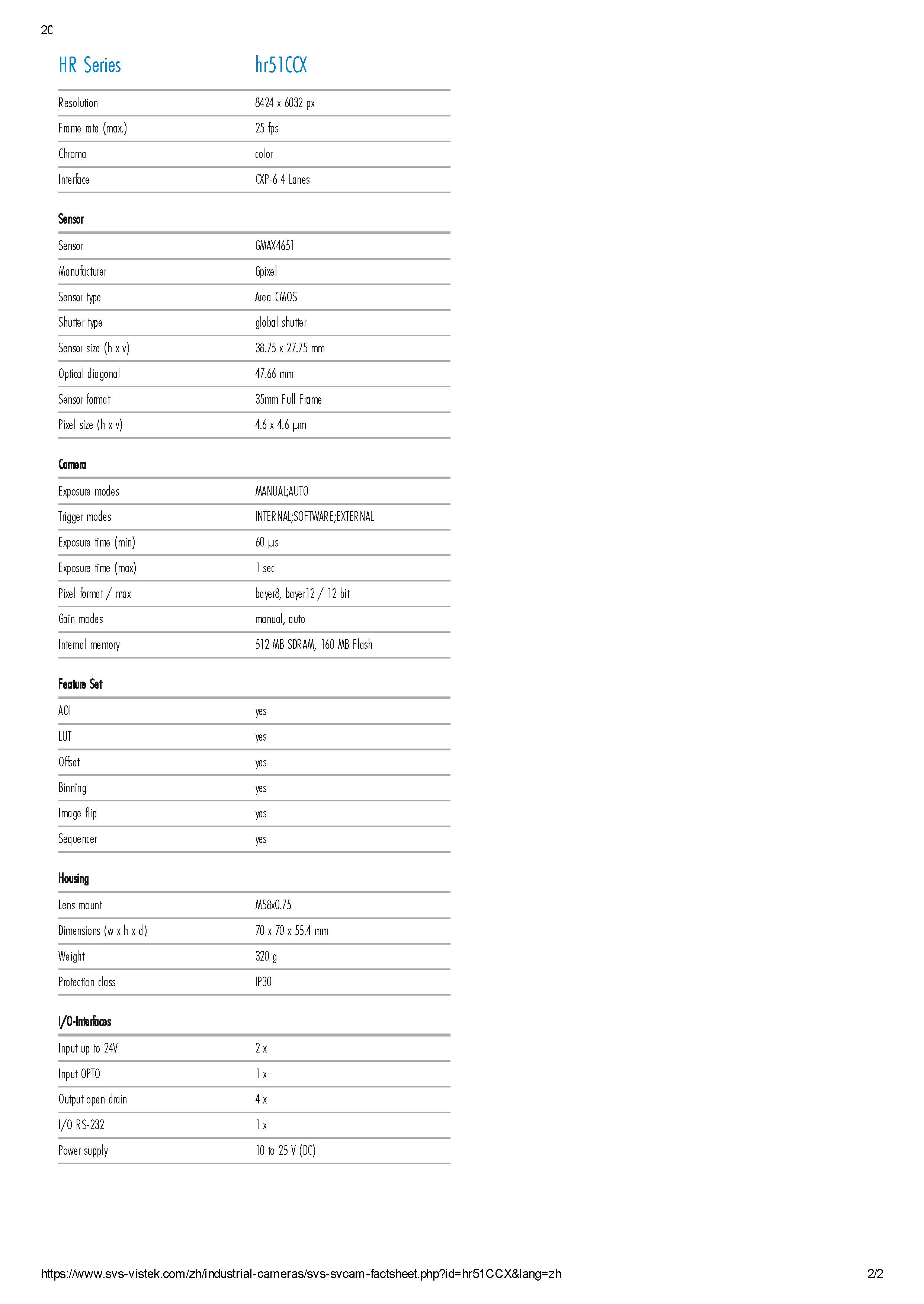 SVS hr51CCX 5000萬工業(yè)相機(jī)
