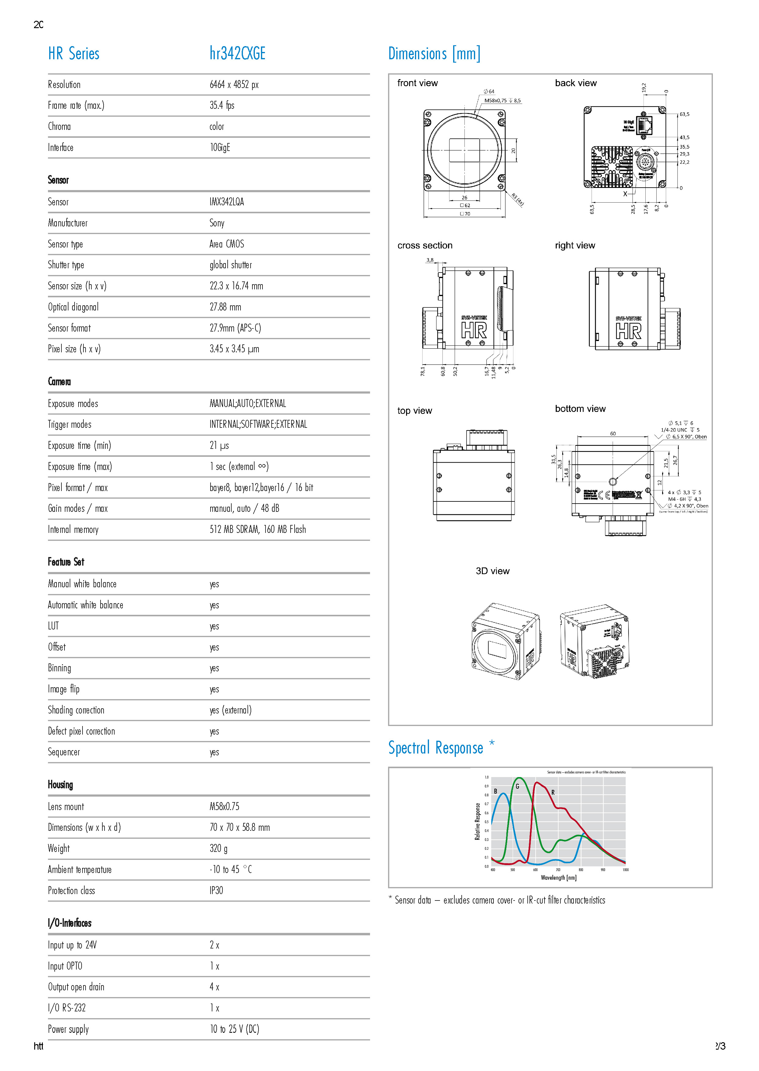 SVS hr342CXGE 3100萬網(wǎng)口彩色工業(yè)相機