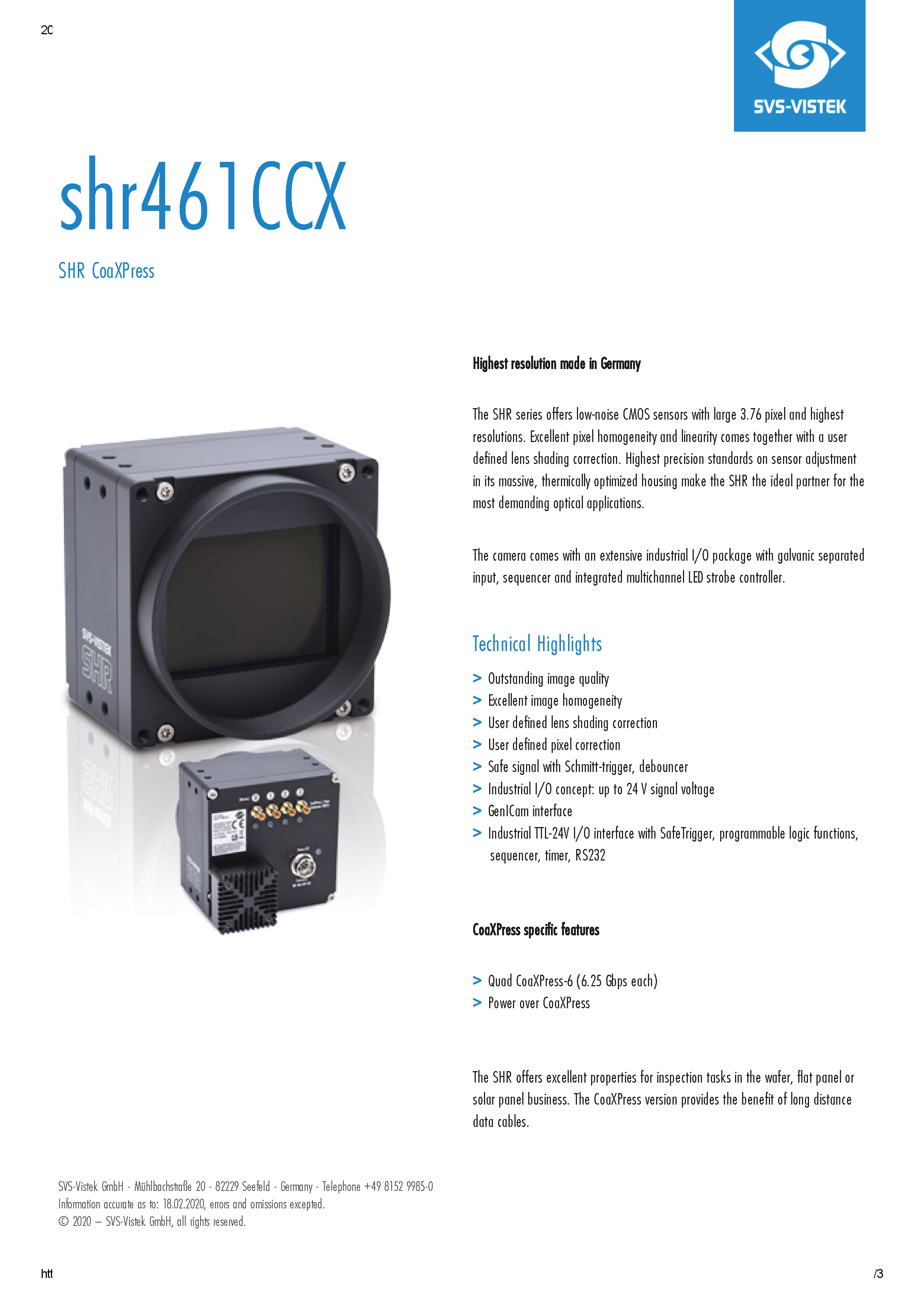 SVS hshr461CCX 1億像素CXP彩色工業相機