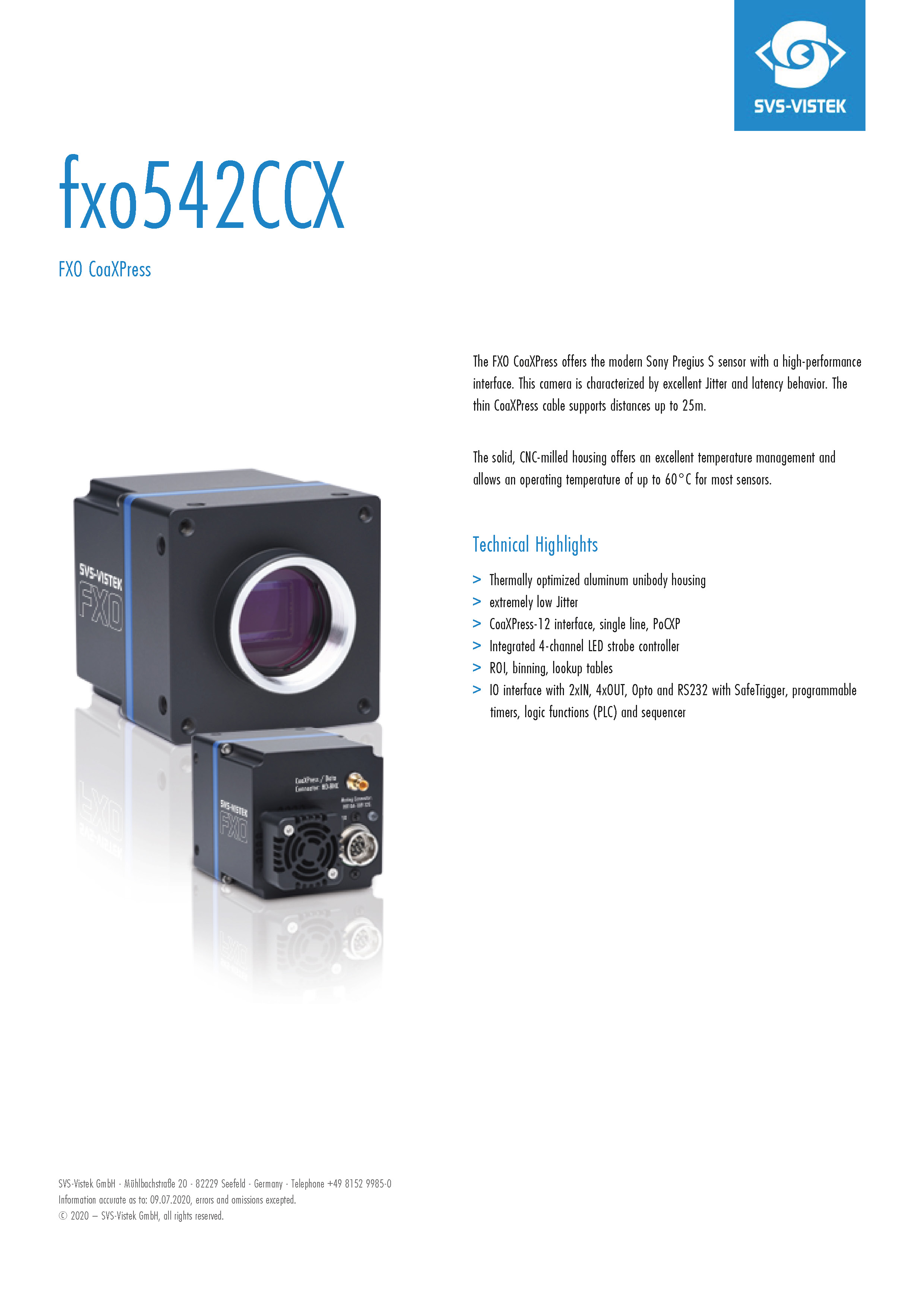 SVS fxo542CCX 1600萬工業(yè)相機(jī)