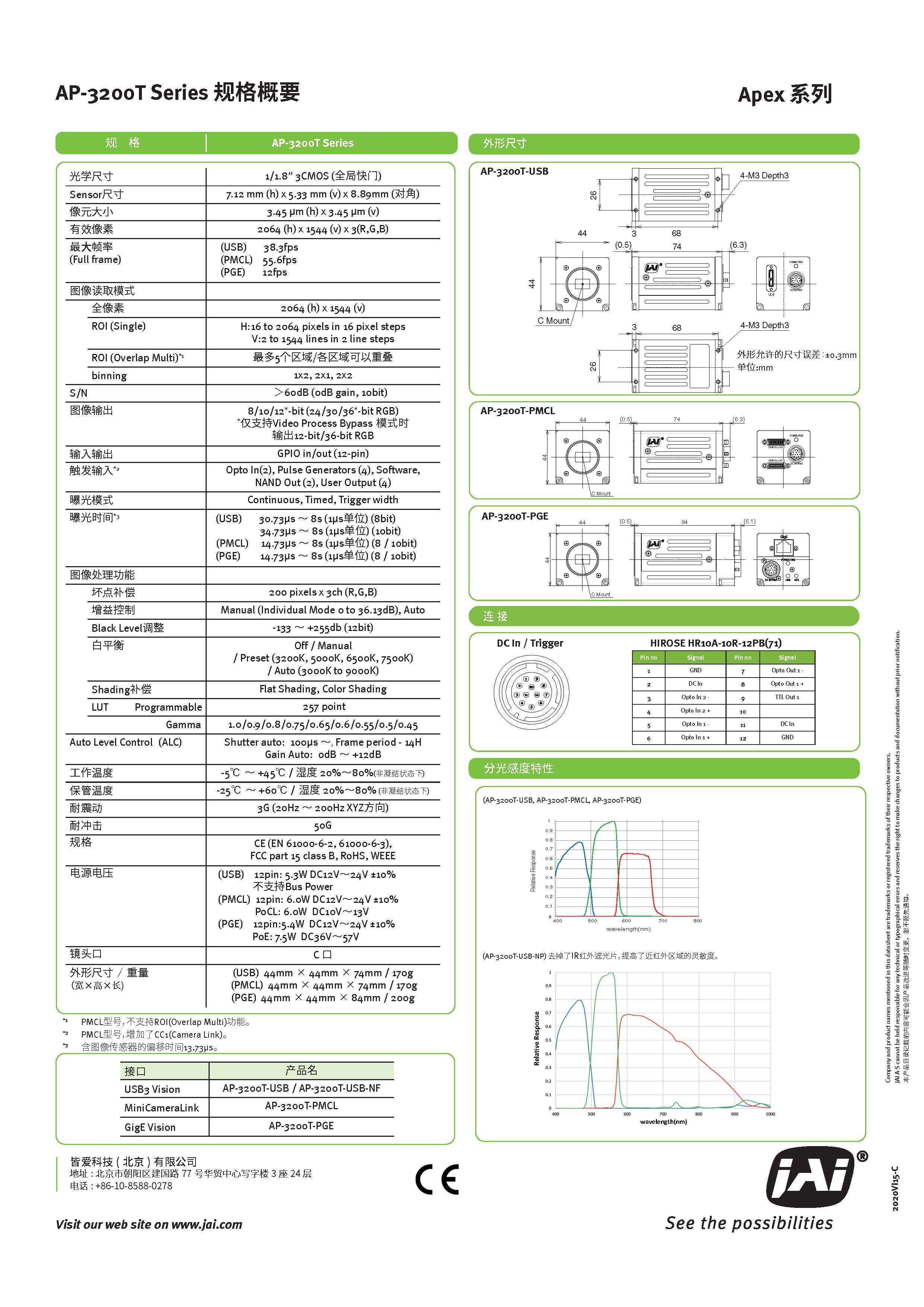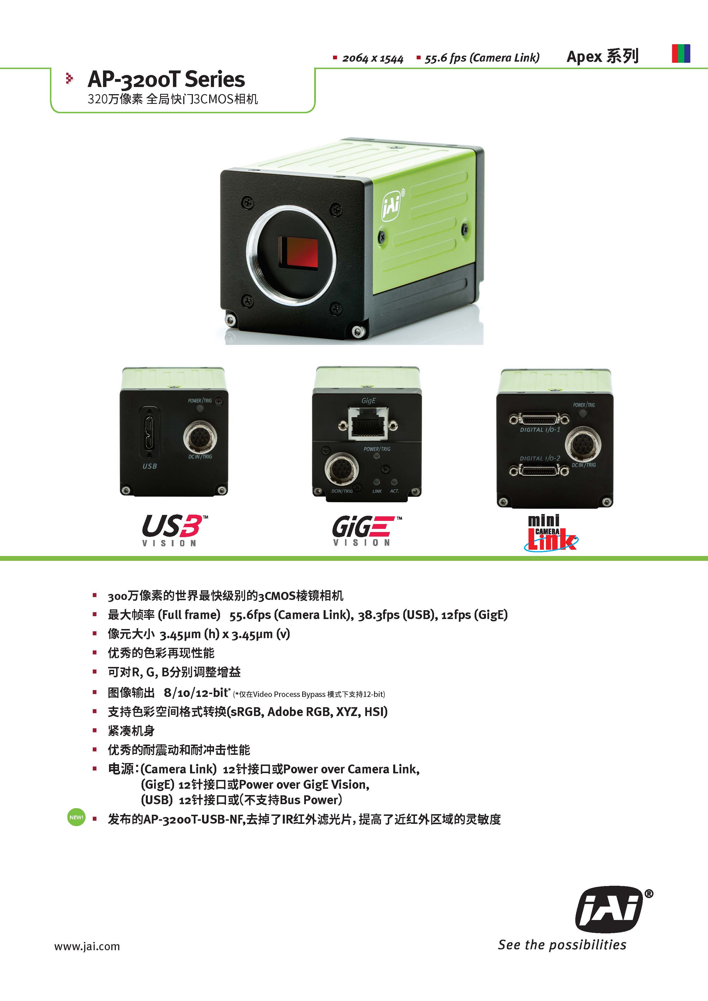 JAI AP-3200T Series 320萬3CMOS相機(jī)CL口